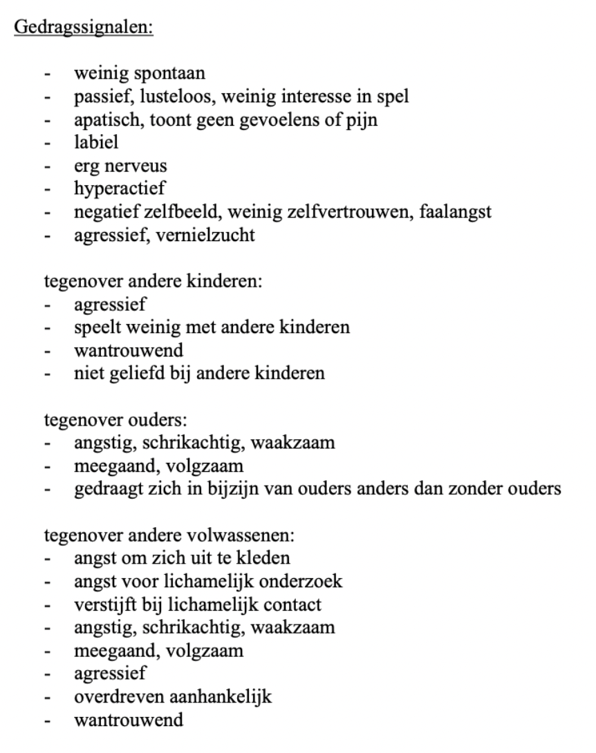 Signalen in het gedrag van een kind kunnen ook aanwijzingen zijn, dit komt bijvoorbeeld voor bij psychische mishandeling.