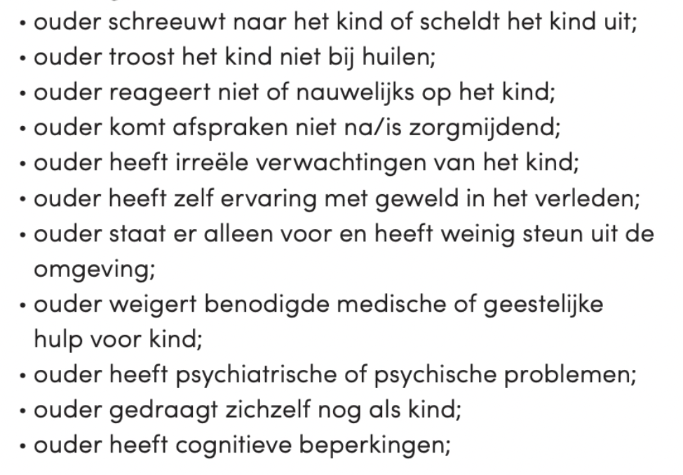Oudersignalen dat er kindermishandeling plaats kan vinden:
